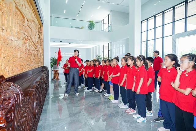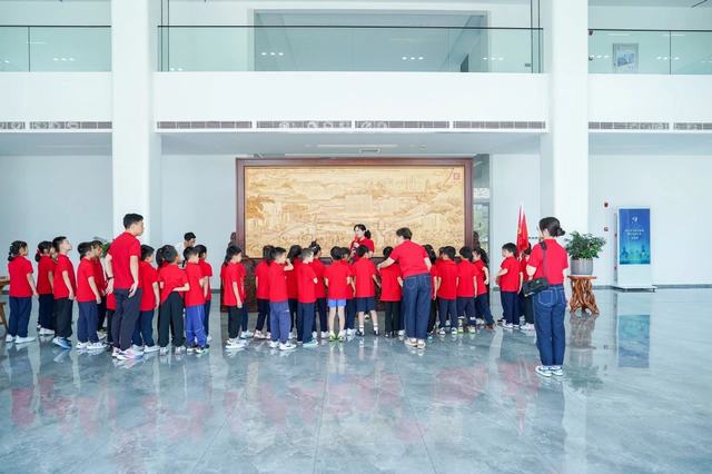 首先,今飛凱達(dá)副總經(jīng)理兼董事會(huì)秘書葛茜蕓帶領(lǐng)孩子們來到了辦公樓大廳木雕屏風(fēng)前,做了屏風(fēng)介紹:這座屏風(fēng)記載了今飛發(fā)展史,它以今飛《飛翔之歌》為主線,以今飛重要?dú)v史瞬間,貫穿全屏,訴說了今飛堅(jiān)守實(shí)體制造業(yè)66年艱苦創(chuàng)業(yè)、奮力拼搏的勵(lì)志故事。這座屏風(fēng)把老一輩今飛人艱苦創(chuàng)業(yè),始終秉承實(shí)業(yè)強(qiáng)國(guó)的精神,創(chuàng)造一個(gè)又一個(gè)奇跡的故事篆刻得栩栩如生,也把新一代今飛人接力前行,跟隨社會(huì)發(fā)展的腳步,經(jīng)過改制以后二十多年的跨越式發(fā)展刻畫得淋漓盡致??粗@座屏風(fēng)上的每一個(gè)人物雕刻,聽著葛總的娓娓道來,孩子們?nèi)粲兴?,深受震撼,覺得今飛的創(chuàng)業(yè)者很不容易,很了不起,紛紛為他們的堅(jiān)守點(diǎn)贊。