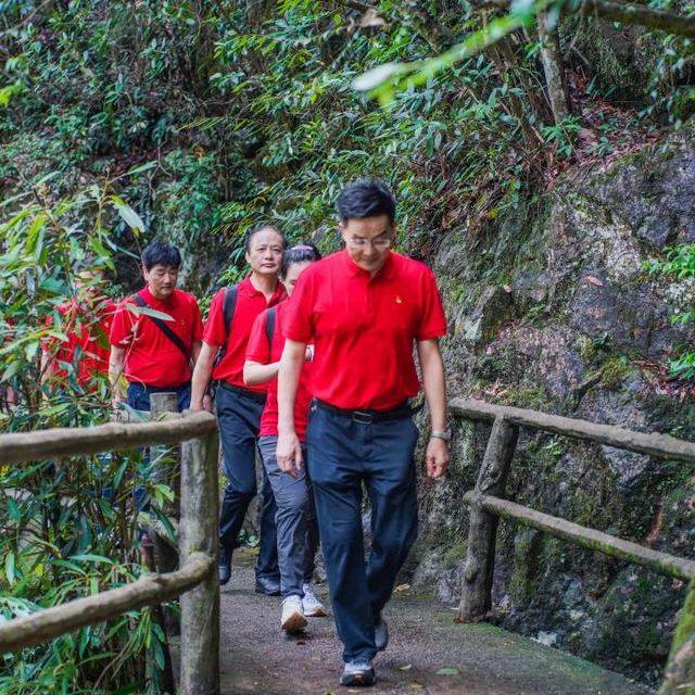 雨后的牛頭山,遠山含黛,近嶺浮青,猶如一幅水墨丹青。密林深秀,光影斑駁,山風送來徐徐清涼。翻開浙江省黨史,牛頭山的武裝游擊戰(zhàn)給國民黨統(tǒng)治當局沉痛打擊。憶苦思甜,不忘先烈,重走紅軍路,今飛黨員隊伍如一條躍動的紅色脈搏,向著海拔1560米的峰頂進發(fā)。淋漓汗水映照擔當,鏗鏘腳步丈量信念,登頂?shù)拿恳徊蕉加∽C著今飛黨員隊伍“奮進同行”的信念與力量,彰顯黨員在困難面前挺膺在前、帶動全員的標桿力量。