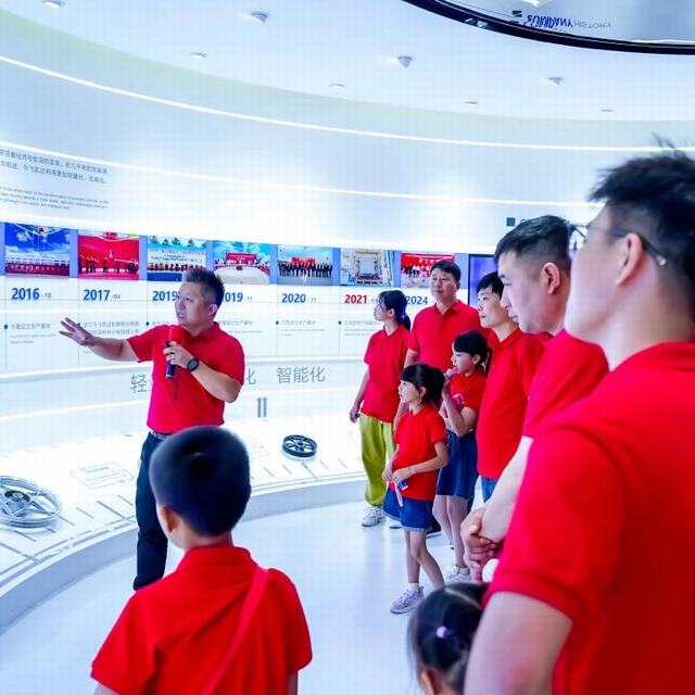 溫暖之旅第一站是參觀集團(tuán)總部大樓、凱達(dá)展廳和智能工廠,遠(yuǎn)到而來的今飛家人們受到了集團(tuán)公司副總裁馮紅、許曉曉、總工程師李文彩、汽摩配研究院常務(wù)副院長朱洪斌、汽輪智能工廠廠長唐志斌和工會副主席孫蓓等人的熱情接待。集團(tuán)總工程師李文彩、汽摩配研究院常務(wù)副院長朱洪斌、汽輪智能工廠廠長唐志斌親自帶領(lǐng)大家參觀集團(tuán)總部、凱達(dá)公司展廳和智能工廠。結(jié)合展廳內(nèi)陳列的資料、圖片、物品和今飛家人們細(xì)細(xì)敘說,帶領(lǐng)大家一起感受時光的脈絡(luò)和歲月的氣息,以及幾代今飛人執(zhí)著堅韌的拼搏奉獻(xiàn)精神,把“實業(yè)報國”根植于心的使命感。在實地參觀今飛智能工廠時,智能制造的技術(shù)和先進(jìn)數(shù)字化的應(yīng)用令大家開闊了眼界,為今后今飛各生產(chǎn)基地建造智能工廠樹立理念。