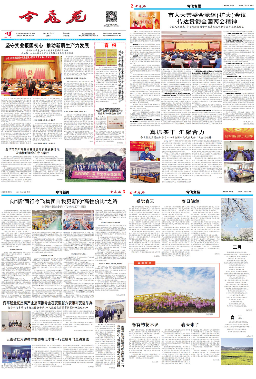堅守實業(yè)報國初心,推動新質生產力發(fā)展一一全國人大代表、今飛控股集團董事長葛炳灶參加第十四屆全國人民代表大會第二次會議系列報道喜報丨今飛控股集團有限公司榮獲婺城經濟開發(fā)區(qū)、白龍橋鎮(zhèn)政府“2023年度工業(yè)綜合十強企業(yè)”等多項榮譽稱號喜報丨浙江今飛摩輪有限公司榮獲“2023年度中國摩托車產業(yè)部品出口十強企業(yè)”獎項金華市東陽商會民營經濟高質量發(fā)展論壇及商協(xié)聯(lián)誼會在今飛舉行市人大常委會黨組(擴大)會議傳達貫徹全國兩會精神一一全國人大代表、今飛控股集團董事長葛炳灶參加會議并在會上發(fā)言汽車輕量化壓鑄產業(yè)招商推介會在安徽省六安市裕安區(qū)舉辦一一金華市汽車摩托車行業(yè)協(xié)會會長、今飛控股集團董事長葛炳灶應邀參加云南省紅河彌勒市市委書記李健一行蒞臨今飛走訪交流真抓實干 匯聚合力 |今飛控股集團組織學習第十四屆全國人民代表大會第二次會議精神向“新”而行今飛集團自我更新的“高性價比”之路一一金華媒體記者走進今飛“未來工廠”報道安徽省政協(xié)黨組成員、副主席周喜安一行蒞臨浙江今飛智造摩輪有限公司走訪調研感覺春天春天三月春有約,花不誤春天來了春日隨筆